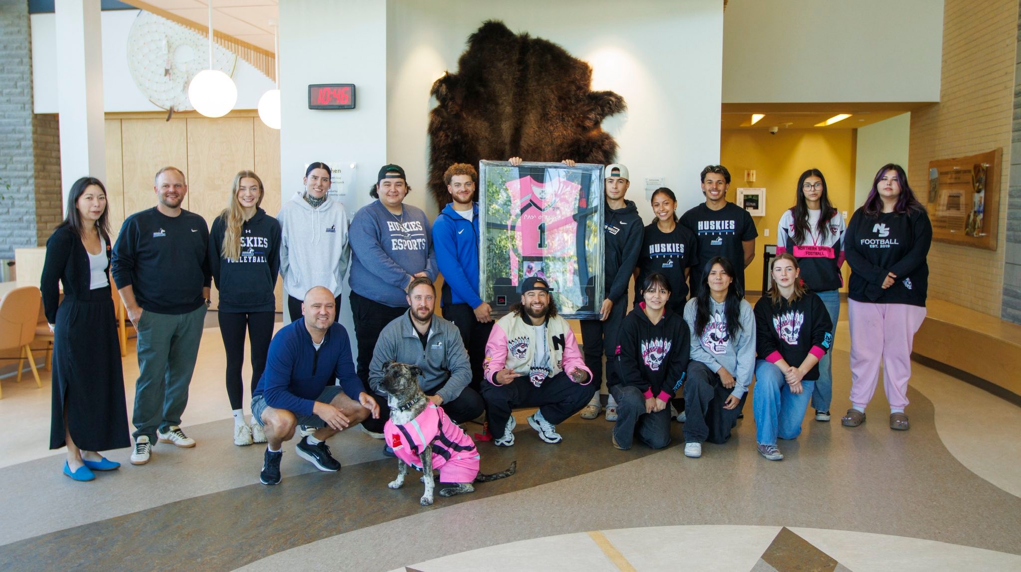 We’re honoured to celebrate the partnership between the Fort McKay First Nation Northern Spirits Football team and Huskies Athletics at Keyano College on their their official academic sponsor. Last week, a few of their future gridiron stars stopped by the Bouchier Indigenous Student Centre at Clearwater Campus to gift a framed jersey.